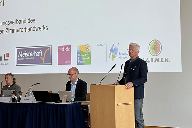 Am Donnerstag, 20. März 2025 fand das 1. Internationale Holzbausymposium im AXICA Kongress- und Tagungszentrum am Pariser Platz in Berlin-Mitte statt. Vor dem Hintergrund des steigenden Wohnraumbedarfs und den notwendigen Anforderungen an den Klimaschutz referierten und diskutieren renommierte Referent/innen aus Politik, Wirtschaft und Wissenschaft über den Beitrag des Holzbaus zum Klimaschutz sowie zur Schaffung von Wohnraum.